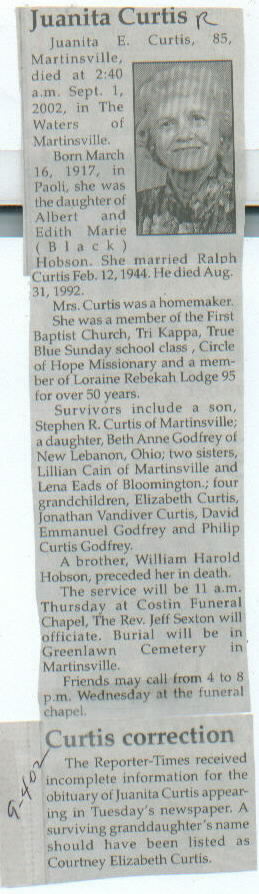 | Survived By | Son, Stephen R. Curtis; daughter, Beth Anne Godfrey; 2 sisters, Lillian Cain and Lena Eads; 4 grandchildren, Courtney Elizabeth Curtis, Jonathan Vandiver Curtis, David Emmanuel Godfrey, and Philip Curtis Godfrey. |