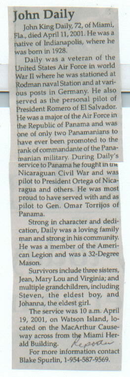 | Survived By | Sisters, Jean, Mary Lou, and Virginia Daily; several grandchildren. |