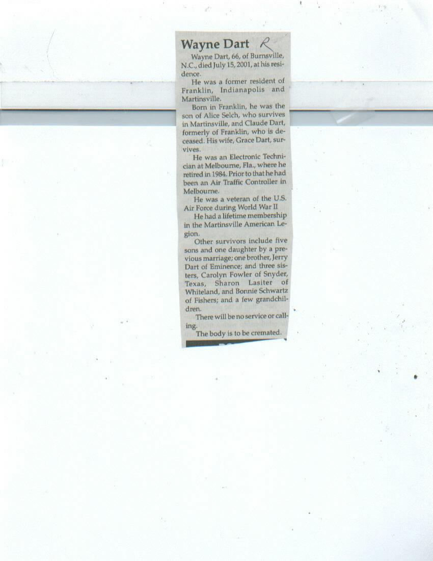 Survived By Mother, Alice Selch; spouse; 5 sons; daughter; brother, Jerry Dart; sisters, Carolyn Fowler, Sharon Lasiter, and Bonnie Schwarz; grandchildren.