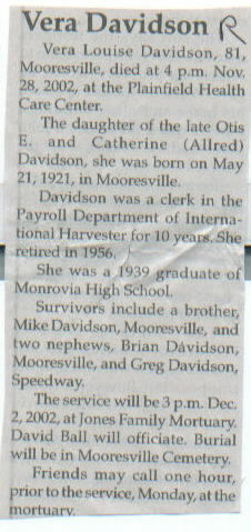 | Survived By | Brother, Mike Davidson; 2 nephews, Brian and Greg Davidson. |