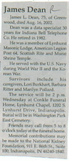 | Other | Age 75. Served with the U.S. Navy during WW II and the Korean War. |