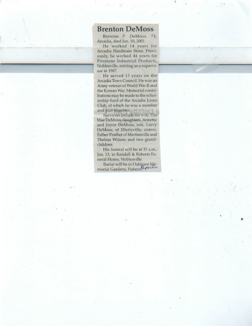 | Survived By | Spouse; daughters, Annetta and Joyce DeMoss; son, Larry DeMoss; sisters, Esther Prather and Thelma Wilson; 2 grandchildren. |