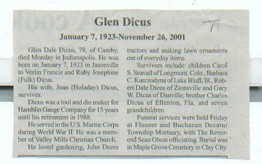 | Other | Preceded in death by parents, Verlin Francis and Ruby Josephine (Fulk) Dicus. |