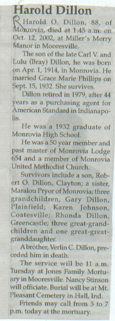| Survived By | Widow; son, Robert O. Dillon; sister, Maralou Pryor; 3 grandchildren; 3 great-grandchildren; great-great-granddaughter. |