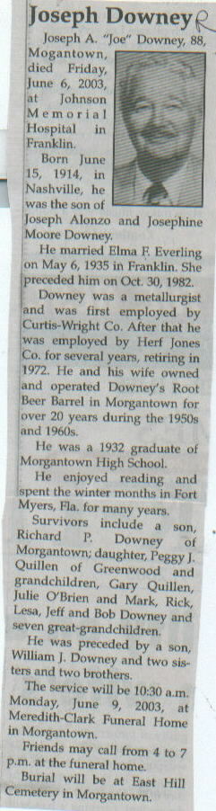 | Survived By | Son, Richard P. Downey; daughter, Peggy J. Quillen; grandchildren, Gary Quillen, Julie O'Brien, and Mark, Rick, Lesa, Jeff, and Bob Downey; 7 great-grandchildren. |