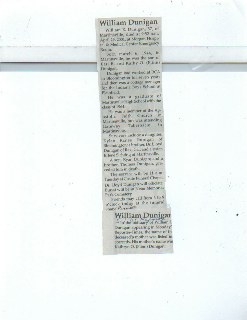| Other | Preceded in death by son, Ryan Dunigan, and brother, Thomas Dunigan. |