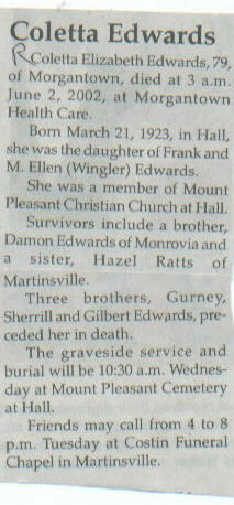 | Survived By | Brother, Damon Edwards; sister, Hazel Ratts. |
