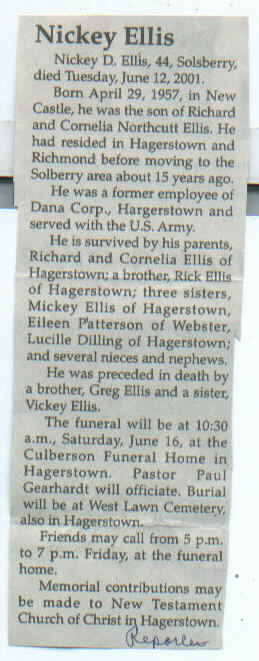 | Other | Age 44. Preceded in death by brother, Greg Ellis, and sister, Vickey Ellis. |