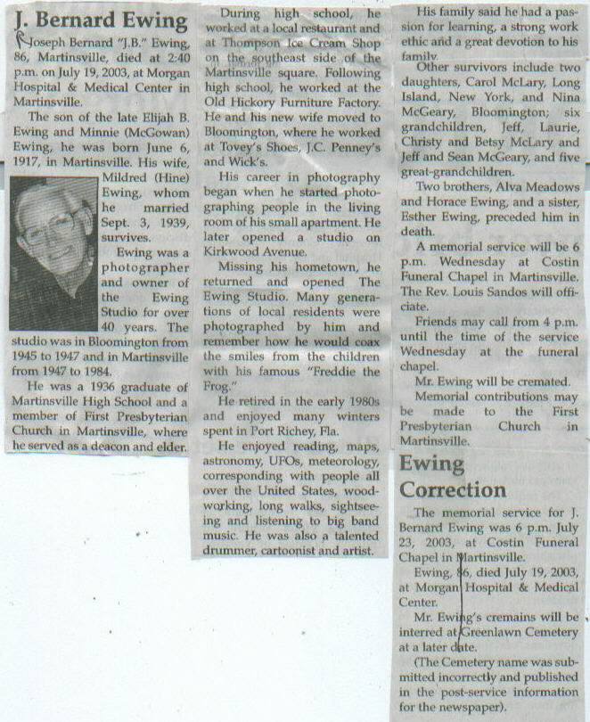 | Other | Age 86. Mr. Ewing will be cremated. |
