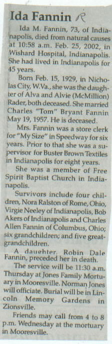 Survived By Four children, Nora Ralston, Virgie Neeley, Bob Akers, and Charles Allen Fannin; 6 grandchildren; 5 great-grandchildren.
