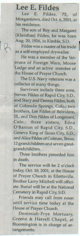 | Other | Preceded in death by parents, Roy and Margaret (Kleinhas) Fildes, and 3 brothers. |