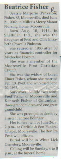 | Survived By | Sons, Fred and Kenneth Fisher; 3 grandchildren; one great-grandchild. |