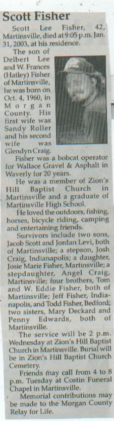 Survived By Two sons, Jacob Scott and Jordan Levi; stepson, Josh Craig; daughter, Josie Marie Fisher; stepdaughter, Angel Craig; 4 brothers, Tom, W. Eddie, Jeff, and Todd Fisher; 2 sisters, Mary Deckard and Penny Edwards.