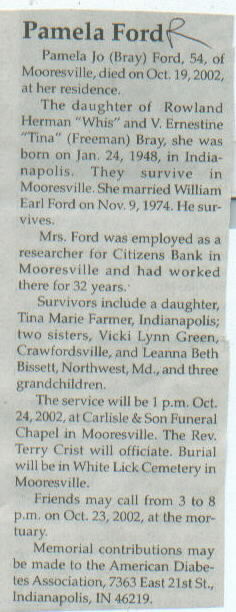 Survived By Spouse; daughter, Tina Marie Farmer; 2 sisters, Vicki Lynn Green and Leanna Beth Bissett; 3 grandchildren.