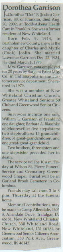 | Survived By | Son, William L. Garrison; daughter, Barbara A. Blaschke; 5 stepsisters; 2 stepbrothers; 15 grandchildren; 31 great-grandchildren; one great-great-grandchild. |