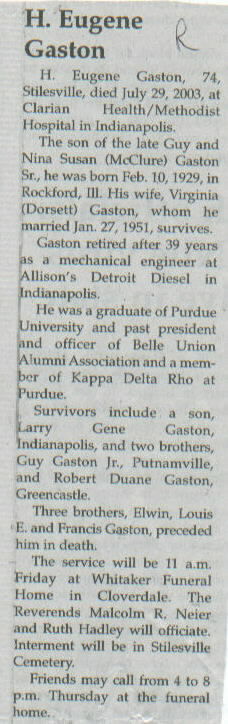 | Survived By | Widow; son, Larry Gene Gaston; 2 brothers, Guy Gaston, Jr. and Robert Duane Gaston. |