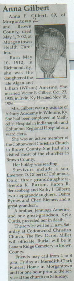 Survived By Son, Emerson D. Gilbert; 3 granddaughters, Brenda K. Burton, Karen R. Benzenberg, and Kathy I. Gilbert; 2 stepgranddaughters, Debra Byrnes and Cheri Riemer; 1 great-grandson.