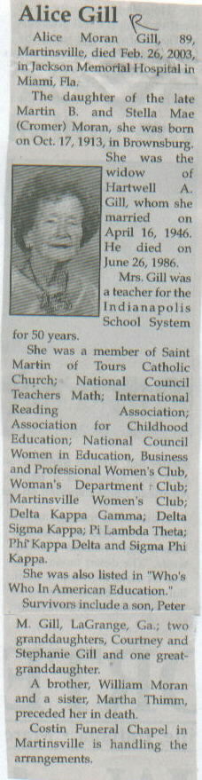 | Survived By | Son, Peter M. Gill; 2 granddaughters, Courtney and Stephanie Gill; one great-granddaughter. |
