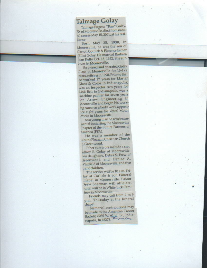 | Survived By | Spouse; son, Jeffrey E. Golay; daughters, Debra S. Frew and Denise A. Whitfield; 5 grandchildren. |