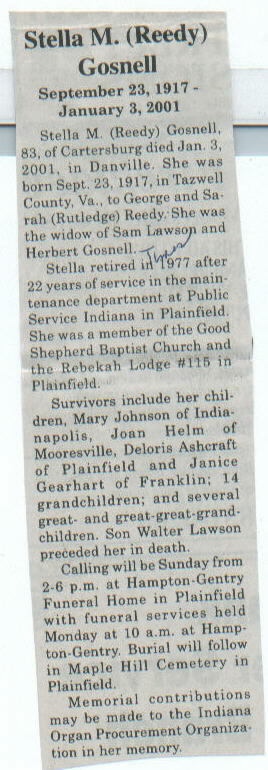 Other Preceded in death by spouses; parents, George and Sarah (Rutledge) Reedy; son, Walter Lawson.
