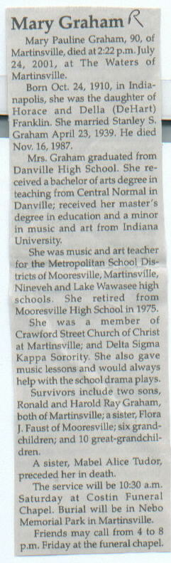 | Survived By | Sons, Ronald and Harold Ray Graham; sister, Flora J. Faust; 6 grandchildren; 10 great-grandchildren. |