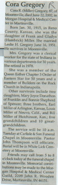 Survived By Spouse; 2 daughters, Mary Joyce Donathon and Bonnie Shepherd; 3 brothers, Earl, Louis, and Bill Miller; 5 grandchildren; 10 great-grandchildren.