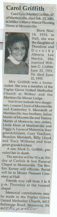 | Other | Parents: Theodore and Dorothy Alberta Lee Martin. Preceded in death by son, Mark G. Griffith. |
