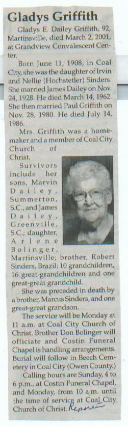 | Survived By | Sons, Marvin and James Dailey; daughter, Arlene Bollinger; brother, Robert Sinders; 10 grandchildren; 16 great-grandchildren; 1 great-great-grandchild. |