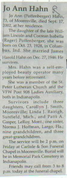 | Survived By | Spouse; 3 daughters, Carolyn J. Smith, Linda J. Rairigh, and Patti A. Gasper; sister, Norma J. Hoffman; 9 grandchildren; 3 great-grandchildren. |