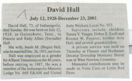| Other | Age 73. Parents: Francis and Rady Allen (Swindle) Hall. |