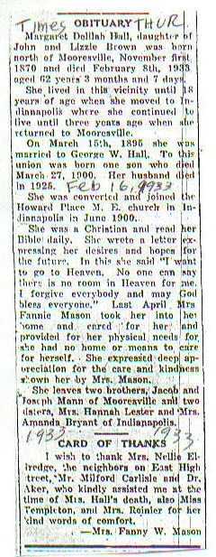 | Obituary Source | Mooresville Times, Feb. 16, 1933 |