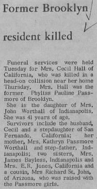 | Survived By | Husband; stepdaughter, of San Fernando, Calif.; mother, Mrs. Katherine Passmore Worthall; stepfather; 2 sisters, Mrs. James Bayless and Mrs. E. R. Jones; cousin, Mrs. Richard St. John of Arizona, who raised the Passmore girls. |