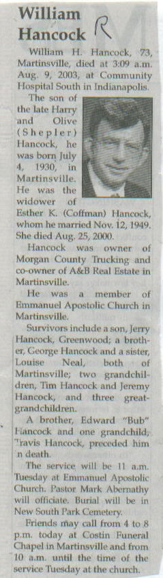 | Other | A brother, Edward "Bub" Hancock, and one grandchild, Travis Hancock, preceded him in death. |