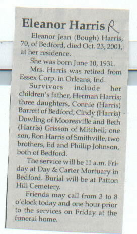 | Survived By | Daughters, Connie (Harris) Barrett, Cindy (Harris) Dowling, and Beth (Harris) Grisson; son, Ron Harris; childrens father, Herman Harris; brothers, Ed and Phillip Johnson. |