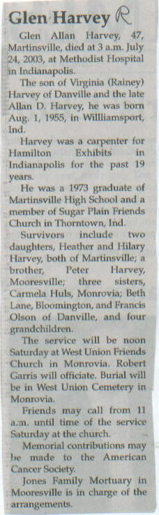 | Other | Age 47. Parents: Virginia (Rainey) Harvey of Danville and the late Allan D. Harvey. |