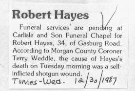 | Obituary Source | Mooresville Times, Dec. 30, 1987 |