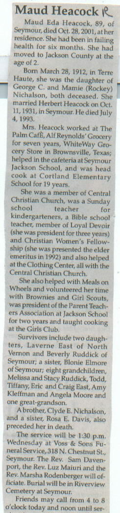 | Other | Preceded in death by spouse; parents, George C. and Mamie (Rockey) Nichalson; brother, Clyde E. Nichalson; sister, Rosa E. Davis. |