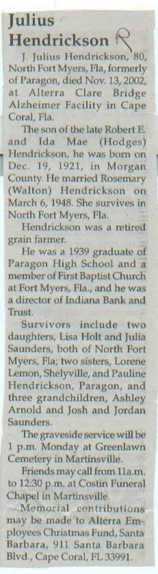| Survived By | Widow; 2 daughters, Lisa Holt and Julia Saunders; 2 sisters, Lorene Lemon and Pauline Hendrickson; 3 grandchildren, Ashley Arnold, and Josh and Jordan Saunders. |