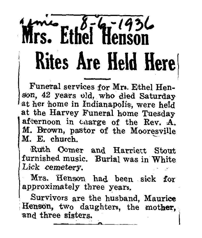 | Other | Age 45. Harvey Funeral Home. (Rev. A.M. Brown of Methodist church.) Buried Aug. 4, 1936. |