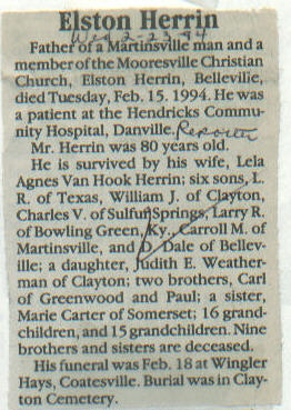 Obituary Source Martinsville Reporter, Feb. 23, 1994