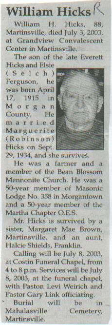 | Cemetery | Mahalasville Cemetery, Martinsville |