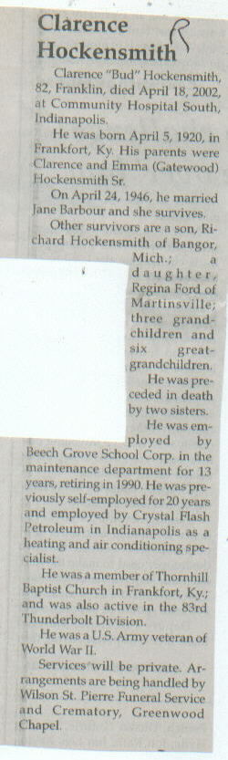| Survived By | Widow; son, Richard Hockensmith; daughter, Regina Ford; 3 grandchildren; 6 great-grandchildren. |