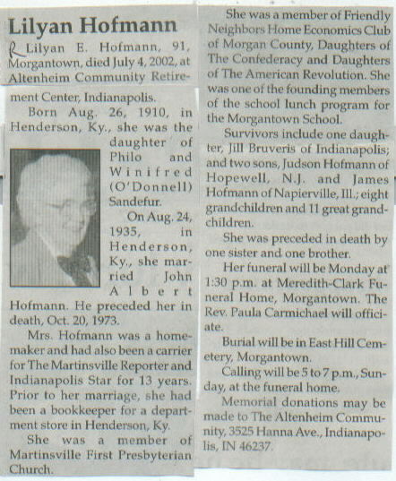 | Survived By | Daughter, Jill Bruveris; 2 sons, Judson and James Hofmann; 8 grandchildren; 11 great-grandchildren. |