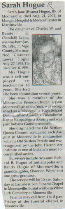 | Survived By | Two sons, Richard B. and Randy Hogue; granddaughter, Shannon Witte; one great-grandson. |