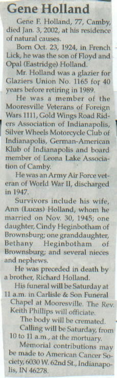 Other US Army Air Force veteran of WW II, discharged in 1947. Preceded in death by a brother, Richard Holland. Cremation.