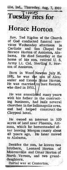 | Survived By | Son, Sterling R. Horton; brothers, Leonard and Omar Horton. |