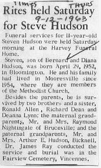 Survived By Parents, Bernard and Diana Hudson; brothers, Ronald Allen and Richard Dean Hudson; sister, Deanna Lynn Hudson.