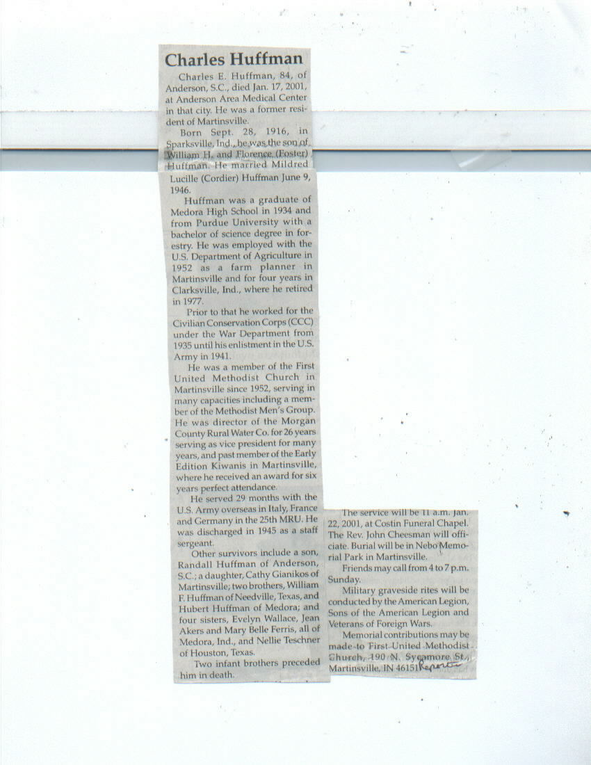 | Other | Age 84. Parents: William H. and Florence (Foster) Huffman. U.S. Army veteran, World War II. |