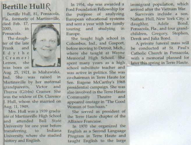 | Other | Age 81. A private funeral mass will be conducted at St. Pauls Catholic Church in Pensacola, with a memorial planned for later this spring in Terre Haute. |