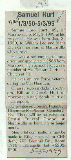 Other Age 49. Costin funeral, Martinsville; graveside services at Mt. Pleasant cemetery at Hall. No calling. US Air Force veteran, Vietnam. Graduate Monrovia HS 1968. Died at his home; born at Danville.